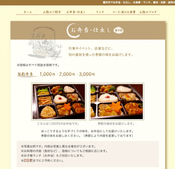 もともと「豊田市 仕出し」で山路様のホームページは検索上位にきていました。